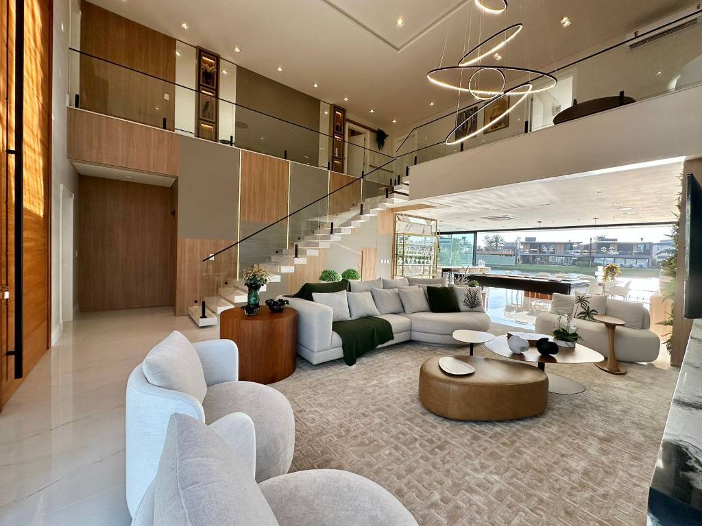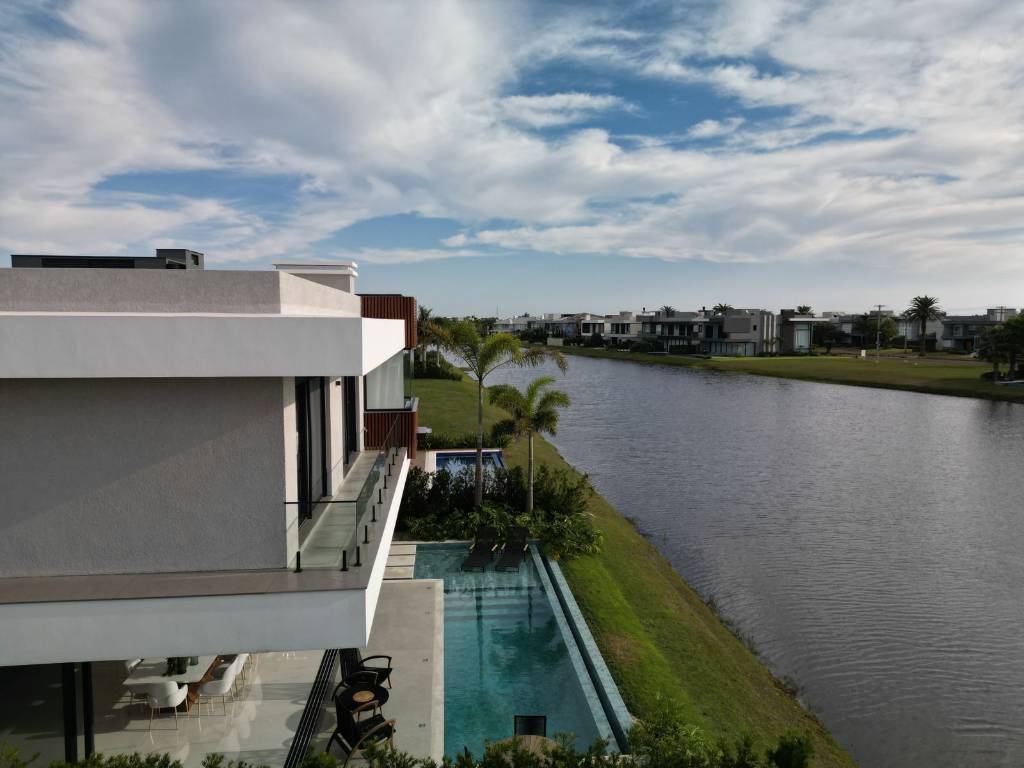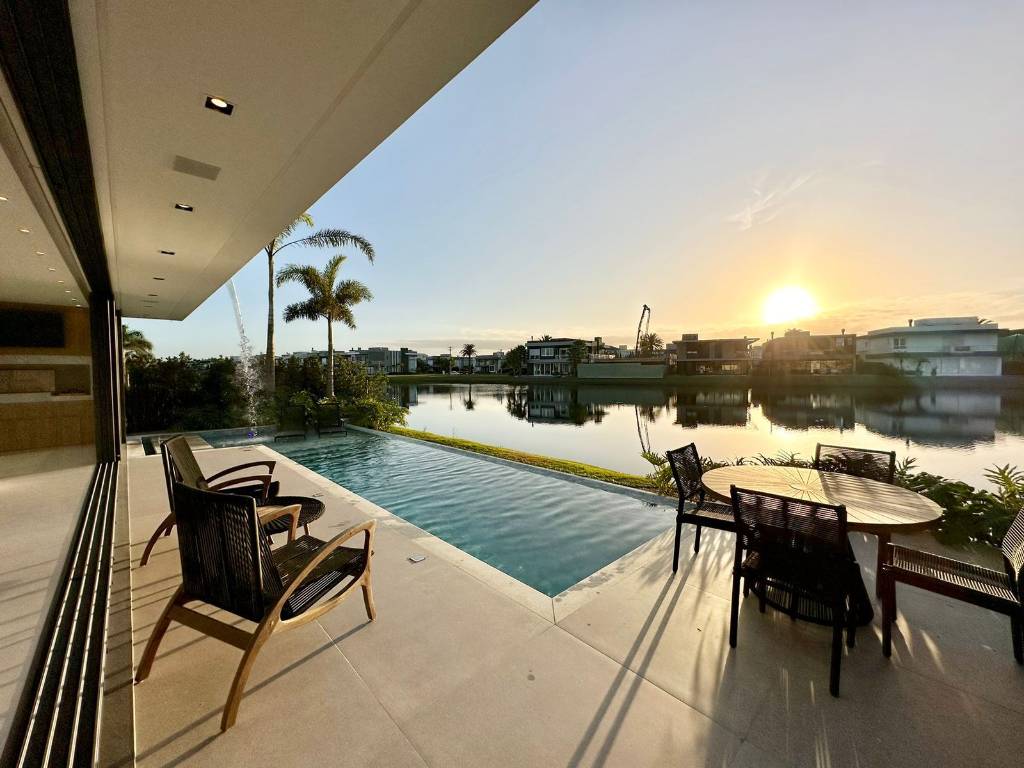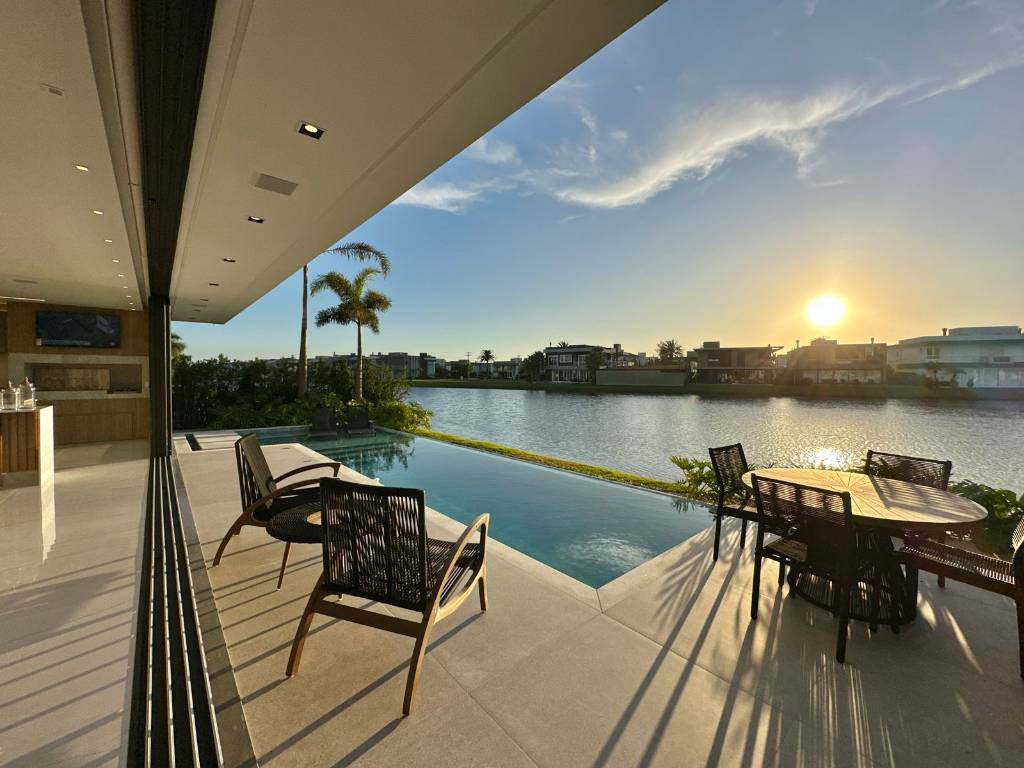 Mansão no Condomínio Enseada, composta de 426 m2 de área construída, distribuído em 5 suítes, uma máster e uma térrea, dependência de empregada, piscina com borda infinita, beira lago, pé direito duplo, automatizada, mobiliada e decorada, pronta para ocupar. Estuda propostas. Agende uma visita. Saiba mais informações. Confira!