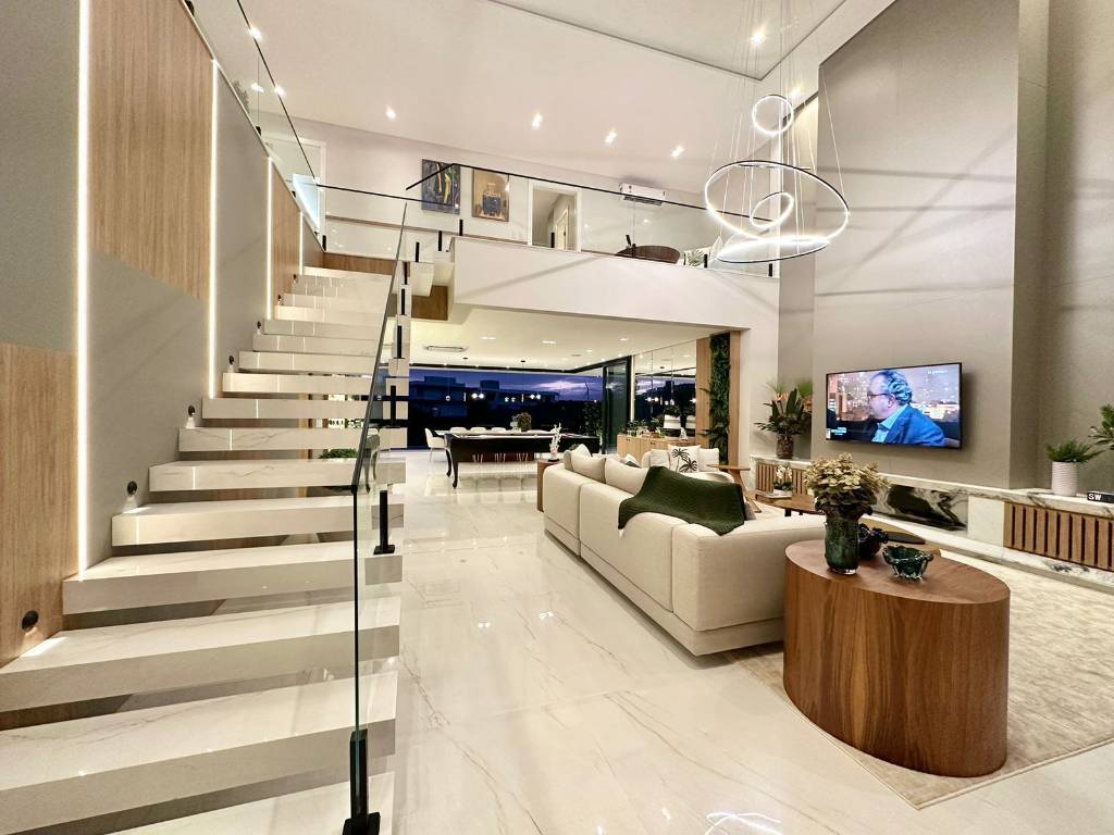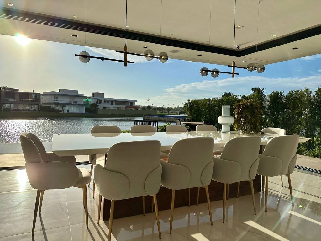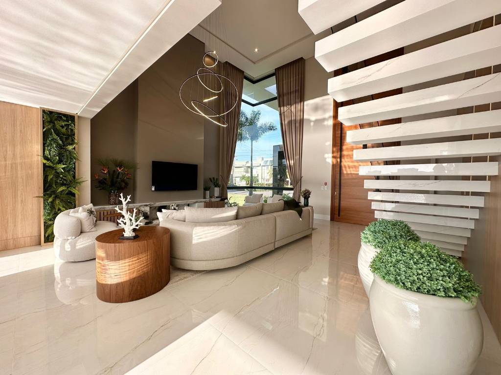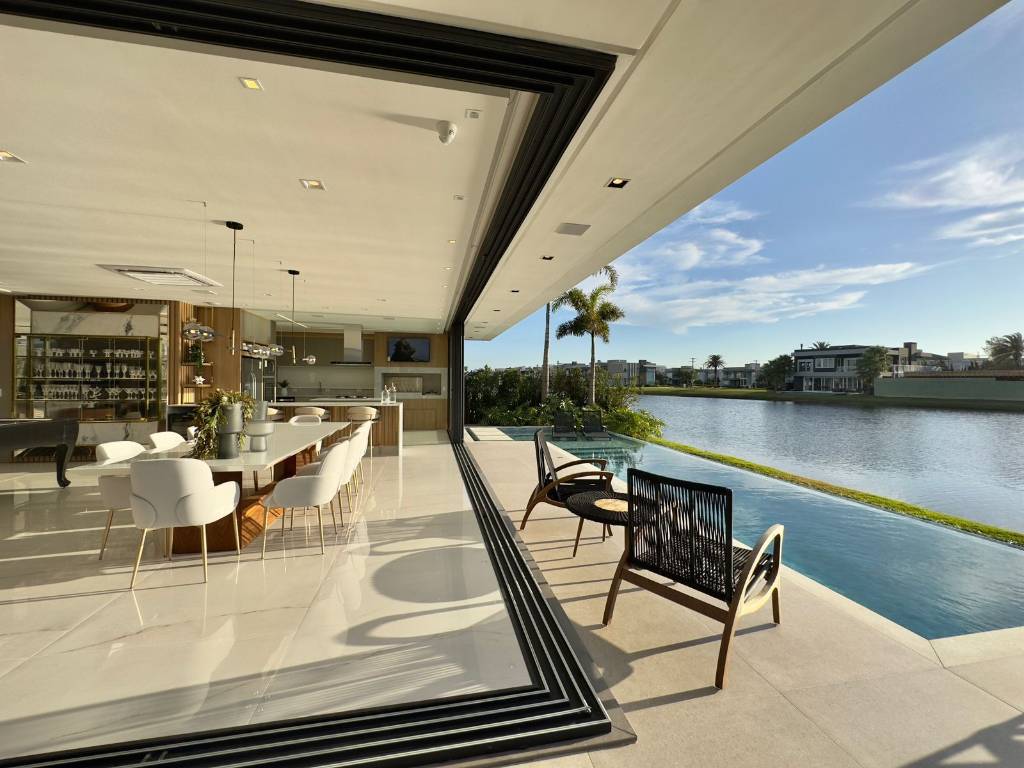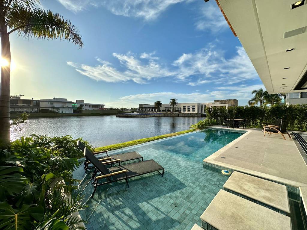 Mansão no Condomínio Enseada, composta de 426 m2 de área construída, distribuído em 5 suítes, uma máster e uma térrea, dependência de empregada, piscina com borda infinita, beira lago, pé direito duplo, automatizada, mobiliada e decorada, pronta para ocupar. Estuda propostas. Agende uma visita. Saiba mais informações. Confira!